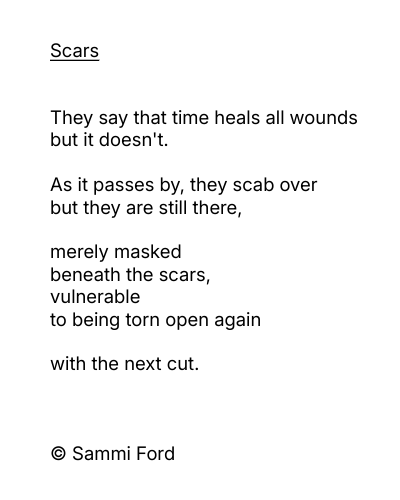 Most neurodivergent people have had issues in life, that can be traumatic. They may be masked but can resurface, hence this poem.